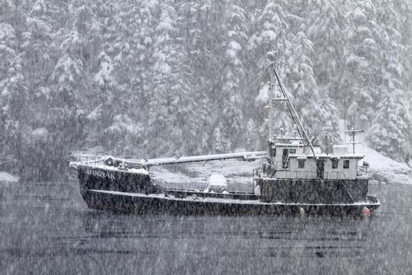 I am literally trembling as I write this. Once we were in the water Rick was able to bring the skiff towards her and I was calling to her, and she was looking at us and paddling madly and screaming madly and I tried to reach her from my side and as I leaned over the water she was too far away and I was telling Rick I couldn’t reach her—where’s the halibut net when you need it—and then he managed to get the stern close enough, and he reached in and grabbed her by the scruff of her neck, scooped her into his arms, and handed her off to me. OH!!!! God, how I grabbed that wet, scrawny little pudster and wrapped my arms around her on my lap, hunching my body over her to warm her, never ever to let her go. She didn’t say anything at first, but sat there, hunkered down, letting me sqeeze the water out of her paws, while I gasped out another of what was probably a torrent of commands, “Home, Rick, we’re going home.”
